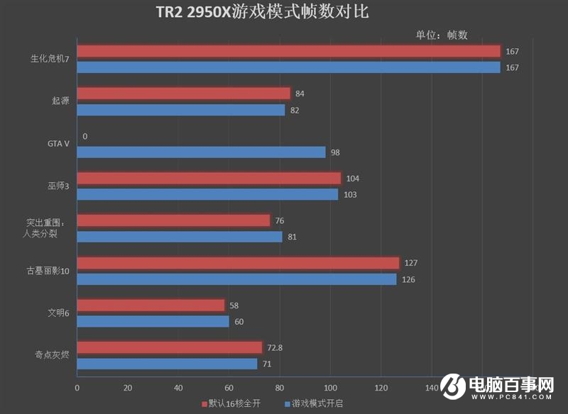 在2950X平臺(tái)測(cè)試的8款游戲中,全核模式下只有《GTA 5》會(huì)提示線(xiàn)程錯(cuò)誤而無(wú)法開(kāi)始游戲;其他7款游戲在開(kāi)啟游戲模式后,只有《文明6》、《突出重圍:人類(lèi)分裂》獲得了幀數(shù)小幅度提升,剩下的5款游戲在16核全開(kāi)時(shí)幀數(shù)比游戲模式更高。
