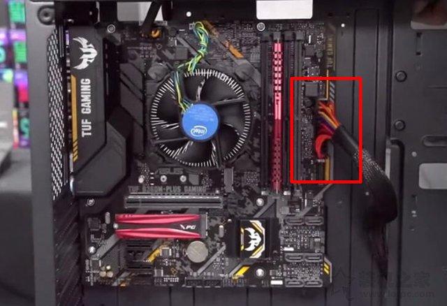 并插入主板的CPU供電接口插槽中,提供CPU進行供電,如下圖所示。
