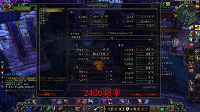我們先來看看高頻內存與低頻內存對魔獸世界這款游戲的影響,取要塞中同一場景同一設置下的幀數對比,2400頻率內存幀數大約是58幀,而3000頻率達到了67幀。