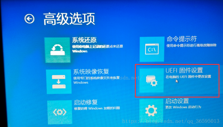 2、點擊高級啟動的 立即重新啟動->點擊疑難解答->高級選項->UEFI固件設置->重啟