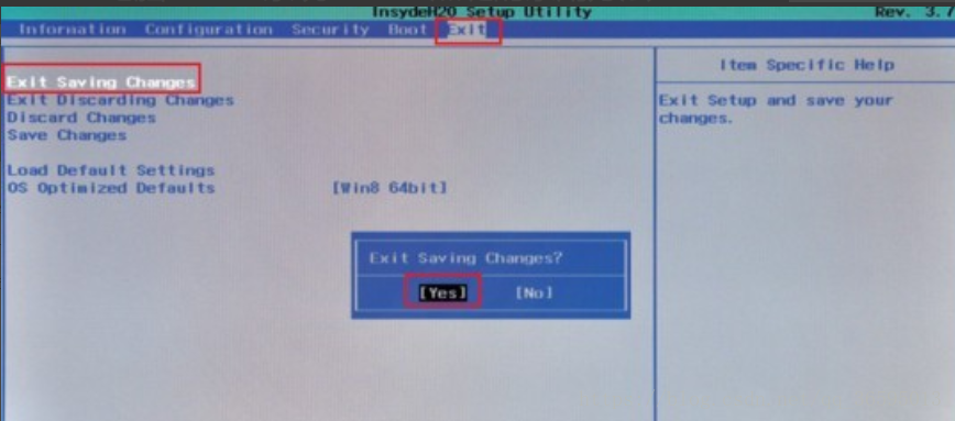 4、進入Exit(退出)菜單,并選擇Exit Saving Changes(退出并保存改變),即可完成更改操作。