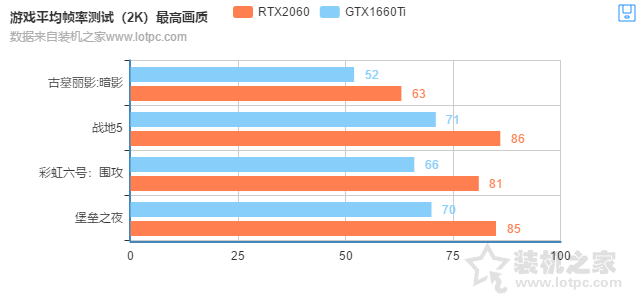 游戲測試我們選用了4款,分別是《古墓麗影:暗影》、《彩虹六號:圍攻》、《戰地5》以及《堡壘之夜》,在1080P和2K分辨率下調至最高畫質進行測試,表現如下。