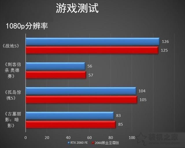 我們來(lái)看看RTX2060顯卡性能表現(xiàn),分別采用了《戰(zhàn)地5》、《孤島驚魂5》、《古墓麗影 暗影》和《刺客信條 奧德賽》,其中《孤島驚魂5》與《刺客信條 奧德賽》支持DX11,其他兩款支持DX12,分辨率設(shè)為1080P,映眾 GeForce RTX 2060黑金至尊版 6G與公版RTX 2060進(jìn)行對(duì)比。