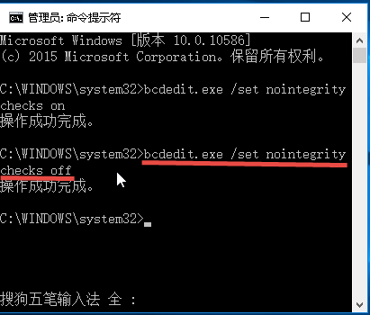 4、如果想再恢復驗證驅動則在CMD中輸入bcdedit.exe/setnointegritychecksoff按回車鍵執行即可。