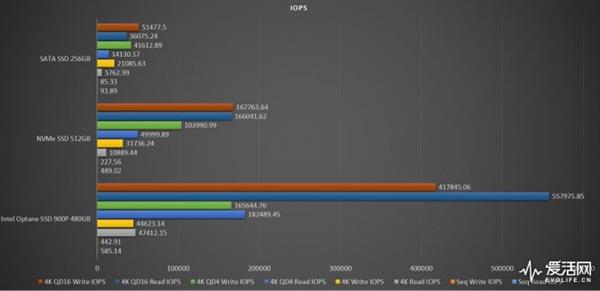 在2017年末,英特爾將誕生于超算的傲騰技術正式加入到固態硬盤陣營中,就算是初代傲騰SSD 900P,隨機寫入IOPS操作就可以輕松達到55萬次IOPS。在英特爾的解釋中,傲騰速度處于固態硬盤和內存之間,但作為非易失性存儲器,傲騰能做到斷電之后不會丟失信息,這是內存所做不到的。