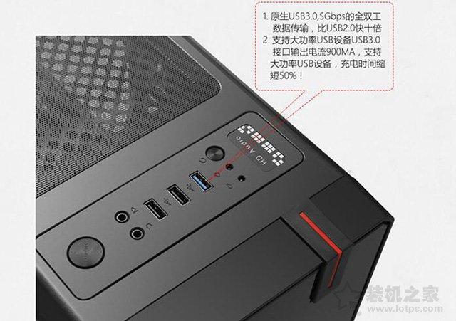 機箱的接口常見的是USB2.0、USB3.0以及音頻接口,有些入門機箱不帶USB3.0,建議選用帶有USB3.0接口,因為如果有USB3.0的U盤或者移動硬盤,速度相對要快上不少,雖然現在的新主板上都有USB3.0接口,但是對于U盤、移動硬盤之類的,每次到主機后面插拔顯得十分不方便。