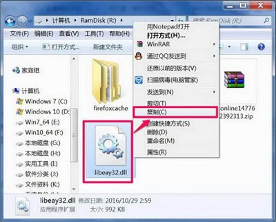 2、下載之后,解壓出來,然后將libeay32.dll文件放到C:\Windows\System32文件夾下。如圖所示: 注意:如果是64位的系統(tǒng),則放到C:\Windows\syswow64文件夾之中。