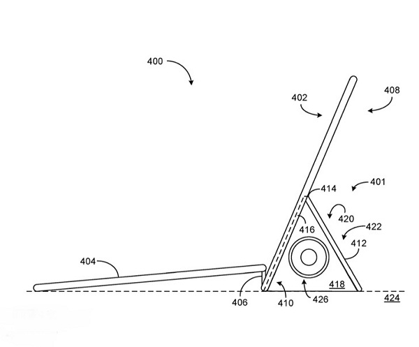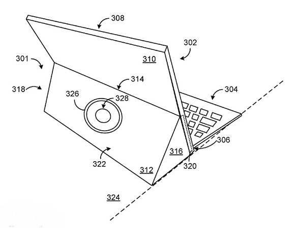 在近期發布但最早于2018年4月30日提交的專利中,微軟認為Surface的支架可以裝上合適的揚聲器。將揚聲器放置在此處的另一個優點是,支架和Surface之間的空間可以充當共鳴箱,增強低音。