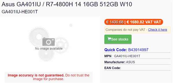 - GA401IV with Ryzen 7-4800HS