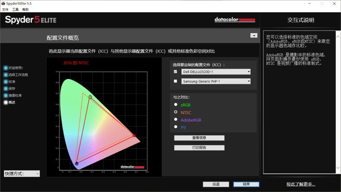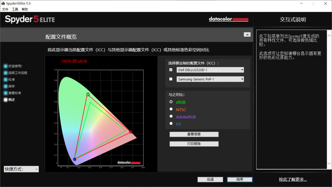 辦公室白天環境,首先將顯示器預熱超過一小時,運行Spyder 5 Elite進行校色,最終獲得的數據為:100%的sRGB,85%的NTSC,87%的AdobeRGB和97%P3標準色域,各項指標均略高于官方參數,可見其性能表現非常優秀。