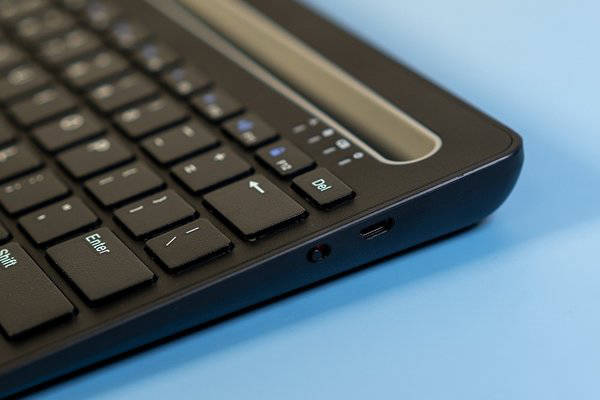 雷柏XK100藍(lán)牙鍵盤擁有前高后低的小角度傾斜,用戶在使用鍵盤輸入時的手感舒適。鍵盤右側(cè)邊框則是鍵盤的撥動開關(guān)、Micro-USB充電接口。雷柏XK100鍵盤內(nèi)置280mAh電池,配合內(nèi)置的自動休眠技術(shù),可為鍵盤提供最長93小時續(xù)航時間。
