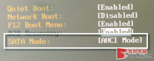 重新啟動Win7,在開機(jī)時(shí)按F2鍵登錄BIOS設(shè)置界面,切換到“Advcanced”設(shè)置頁,將“SATA Mode”選項(xiàng)值改為“AHCI Mode”(圖3),然后按F10鍵保存退出。再次登錄Win7時(shí)就不會藍(lán)屏了。