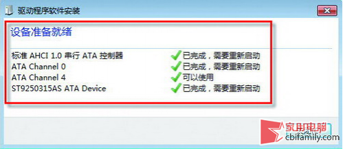 安裝完磁盤驅(qū)動后,系統(tǒng)會提示正在安裝設(shè)備驅(qū)動,大約過1分鐘左右,會彈出“設(shè)備準(zhǔn)備就緒”的提示窗口(圖4),點(diǎn)擊“關(guān)閉”按鈕重新啟動系統(tǒng)即可。