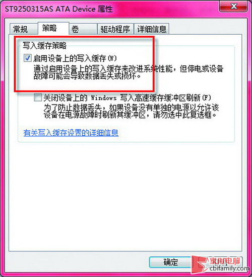 方法是進(jìn)入設(shè)備管理器,展開“磁盤驅(qū)動器”,右鍵單擊硬盤標(biāo)志,并選擇“屬性”(圖5),切換到“策略”窗口,勾尋啟用設(shè)備上的寫入緩存”(圖6),然后點(diǎn)“確定”按鈕。
