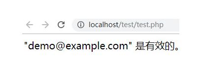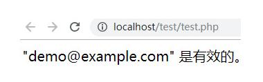 <?php$email="demo@example.com";if(filter_var($email, FILTER_VALIDATE_EMAIL)){echo'"'.$email.'" 是有效的。';}else{echo'"'.$email.'" 是無效的。';}
