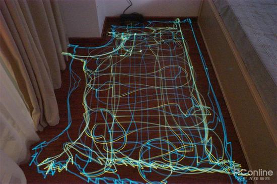 首先我們來看看Neato 掃地機器人 D7清掃的路線規(guī)劃圖,我們通過長曝光獲得的光繪圖,可以清晰看到neato D7從出發(fā)到回到底座這個過程中,打掃房間的軌跡。