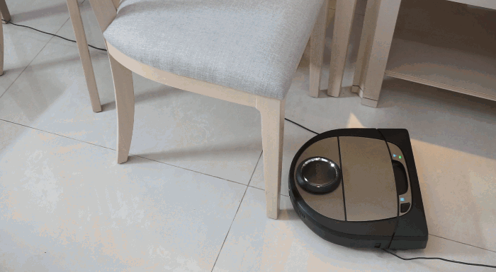 地上散落了多跟電線,哪怕是電線快把掃地機纏住了,Neato掃地機器人D7 也能憑借出色的懸掛性能逃脫出來。