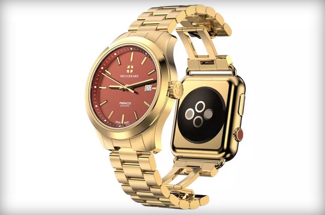 據(jù)科技博客TheVerge報(bào)道,Nico正在銷售新型瑞士生產(chǎn)的手表,它將蘋果Apple Watch整合在了表帶中。這就意味著,用戶可以同時(shí)佩戴兩塊手表:傳統(tǒng)機(jī)械手表在手腕上方,AppleWatch位于手腕下方。