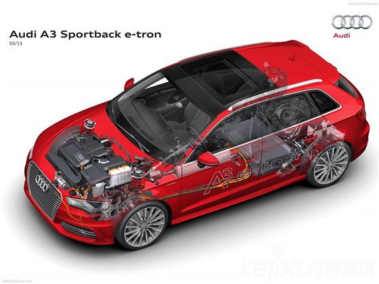 相對比奧迪A3 e-tron,同樣采用的是插電式混合動力系統,搭載一個1.4T渦輪增壓汽油發動機和一個最高扭矩為330牛?米的電動機,依舊是前置前驅的布局,電池和油箱都被安置在車輛的后半部分。