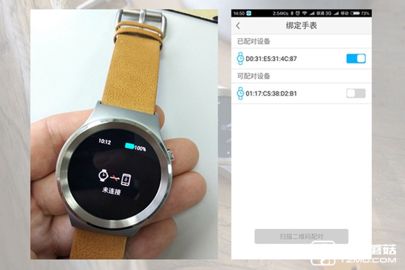▲電量很快就充滿了,當首次使用時需要先綁定手機,點擊未連接圖標時會有一個藍牙地址的二維碼顯示在表盤上,此時只需要用表達APP里的綁定設備界面的掃碼功能即可輕松綁定連接成功,整個過程零難度并且非常快捷。