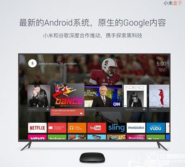 小米推出基于Android TV的小米盒子小米盒子造型優美,是客廳的絕佳搭配。其極富創新性的設計已經榮獲享譽國際的紅點獎與優秀設計大獎。在Android TV6.0系統的支持下,小米盒子擁有海量資源,包括電影、節目、谷歌市場上的游戲,YouTube還有其他的應用軟件。自2013年來,小米電視和小米盒子在中國銷量已經超千萬臺。作為小米全球化的標志性事件,小米盒子--第一個與Android TV 系統配套的小米設備將很快在美國以及其他全球市場與消費者見面。支持4K電視和HDR的視頻流暢回放