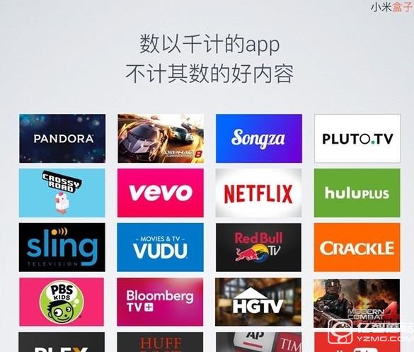 在Google Play的支持下,用戶們能夠擁有充足的娛樂資源。Google Play擁有很多流行的可供下載的流媒體應用軟件比如Netflix,Hulu。小米盒子芯片再加上官方YouTube應用軟件提供了大量的4K和HDR支持,創造出絕佳的視覺體驗。小米盒子會提供視頻和音樂流媒體應用軟件。這些軟件會提供一些特別優惠,比如Sling TV,Pandora,Vudu,未來還將有更多內容接入。