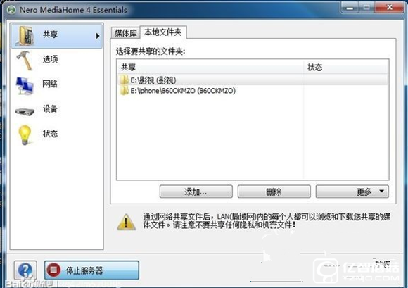 1.電腦上安裝MediaHome_4_Essentials_Windows,安裝完成根據提示共享媒體文件夾(電影?音樂?圖片?看你喜歡),你也可以在安裝完成之后,打開軟件添加或刪除共享文件。(PC端啟動服務器后才能被電視機訪問)