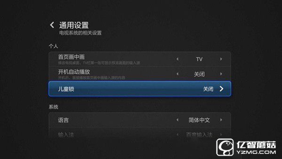 兒童正處在身心迅速發展時期,每天長時間地看電視,容易使孩子神經系統與機體產生疲勞,影響身心健康發展,影響學習等其它活動的正常進行。對孩子的聽力、視力、注意力、性格等的發展均有影響。小米電視特有的“兒童鎖”功能,不但可以控制孩子看電視,還可以促使孩子們學習到不同難度的知識題。“小米電視設置”中選擇“通用設置”,然后就可以看到“兒童鎖”功能,這個功能默認是關閉的。按提示進行一步步設置即可。