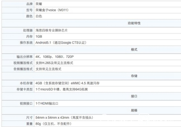 榮耀盒子voice機身高43mm,長寬各54mm,是小型化電視盒子的代表。但就是這樣一個小小的電視盒子卻蘊含著強大的能量。榮耀盒子voice支持4K視頻輸出分辨率,可以播放超高清視頻。另外,支持H.265的專業解碼器也讓榮耀盒子voice的顯示畫面更加清晰絢麗。除此之外,藍牙4.0、300M無限傳輸都是榮耀盒子voice作為功能性電視盒子的憑證。以上這些都是旗艦電視盒子產品中才會有的配置,榮耀盒子voice在小型化的情況下能夠保留這些配置,實屬不易。不過,榮耀盒子voice賴以成名的原因是不僅是因為這些,而是因為身據行業內最高端的智能語音功能。