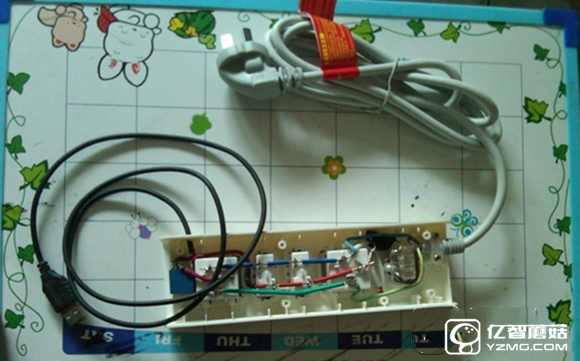 電源插排有四組插座,只把最后一組串入一繼電器,插入電視機電源線,繼電器線圈使用USB插入小米盒子后面OGT口