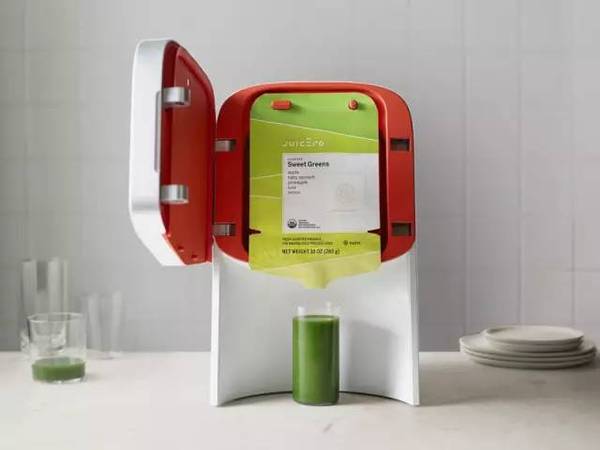 Juicero果汁機售價700美元,特別之處在哪里呢?首先你可以使用手機端一個App來控制它開始打果汁;其次你可以不用自己賣水果切水果,直接向Juicero廠家下訂單,他們會準備好材料給你快遞過來;最后它可以根據你的訂單歷史給你個性化推薦果汁套餐。