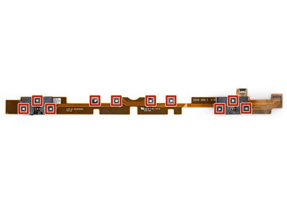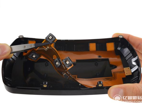 外殼的內部裝有很多磁鐵,上面說的磁力就來自它們。除了磁鐵,還有IR LED陣列。將帶狀線纜拆下,操作也沒有什么難度。