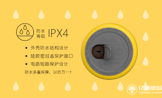 4.防水設計。Wottle 充電暖手杯在防水方面做了多重保障,以防萬一:外殼采用了防水結構設計,充電接口采用了硅膠密封蓋保護接口,同時采用了電路短路保護設計。Wottle 充電暖手杯的防水等級達到了PX4,能防止從任意方向飛濺而來的水侵入。