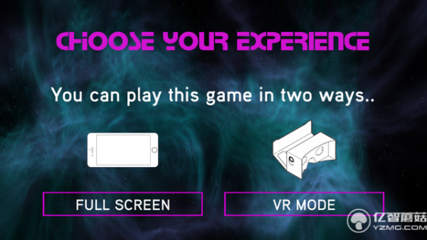 這款游戲有兩種模式:普通全屏幕模式和VR模式。既然我們有VR設備了,那當然選右邊那個了。這款游戲支持市面上絕大多數常見的VR設備,包括我們這里體驗的Cardboard 2以及其他品牌的VR設備。而前者只是在你沒有VR設備的解決方案。