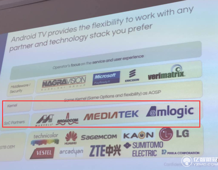 會上,Android TV項目負責人Sascha Prueter向業界宣布,電視廠商方面首批選擇了索尼、飛利浦、夏普、TCL等;晶晨半導體(Amlogic)與Broadcom、Marvell、MTK四家芯片商,則正式成為Android TV目前全球首批芯片合作伙伴。