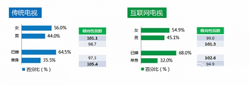 現在很多廣告主還是把更多的眼光和廣告費用投在了以“直播”為形態的傳統電視上,廣告按時間價值售賣,廣告主按照時段進行購買。但是,由于智能電視的加入和很多家庭電視機智能化的升級換代,即使是同一塊屏幕,屏幕本身的屬性和收看的功能場景也發生了巨大的變化。研究發現,互聯網電視的受眾有45%是男性、68%已婚、每天收視時長在1.7小時左右,受眾中月收入在6000元以上的占60%,呈現出年輕化、高端化、收視時間更長的特征。