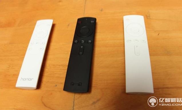 三款盒子的遙控器均支持藍牙操控,榮耀盒子pro配備獨立語音按鍵,而天貓魔盒將語音鍵和菜單鍵進行了合并,三款遙控器無論是造型還是手感都是很接近,但是榮耀盒子PRO的音量鍵是左右設置,這一點小編個人覺得有點不符合使用習慣啊,大家潛意識里音量鍵是上下鍵。
