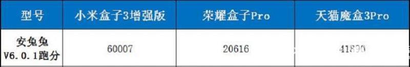 小編用安兔兔對三個盒子分別進行跑分測試,數據結果還是比較驚人的,小米的盒子竟然高達60000分,而榮耀盒子的跑分只有26000分,雖然數值有些差異,但是實際操作過程中沒有感覺到太大區別,也沒有遇到卡頓的情況,俗話說路遙知馬力日久見人心,不知道使用一段時間會不會有很大差別。