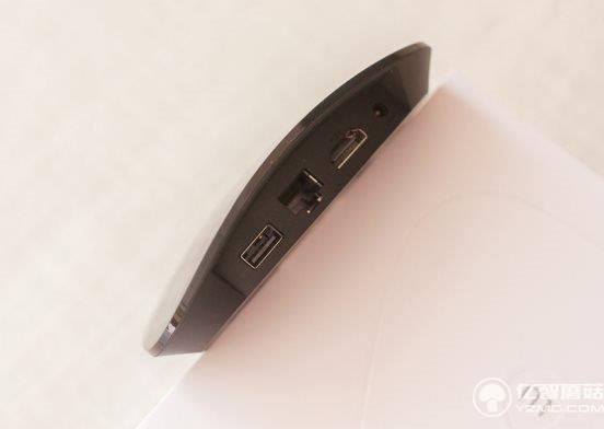 魅族盒子底部的設計則采用磨砂處理,放在桌面更穩定。接口都在盒子背面,主要有USB接口、網線接口、HDMI接口、電源接口4個,很簡單,也夠用。