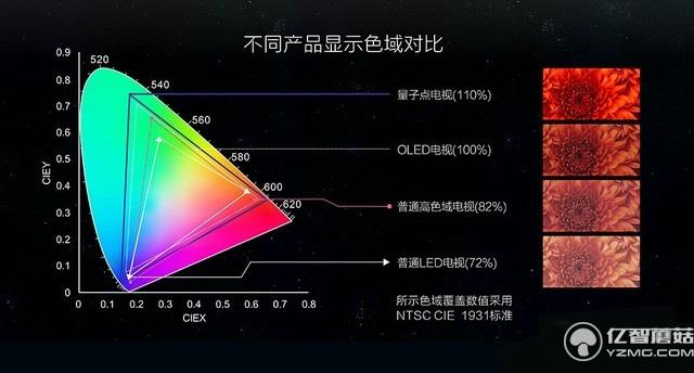3、色彩:電視產品廠商都在追求的色域,我們可以簡單的理解為,電視色域越廣,覆蓋面越大,色彩越豐富,更豐富的色彩也同時能有更絢麗的視覺體驗。