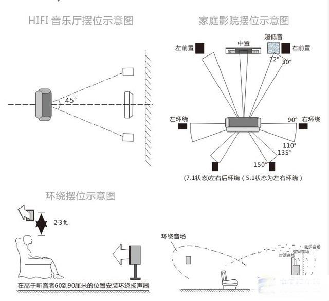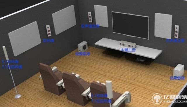 5.1和7.1聲場都可以如此搭建(聲道單元要距離墻角半米以上)