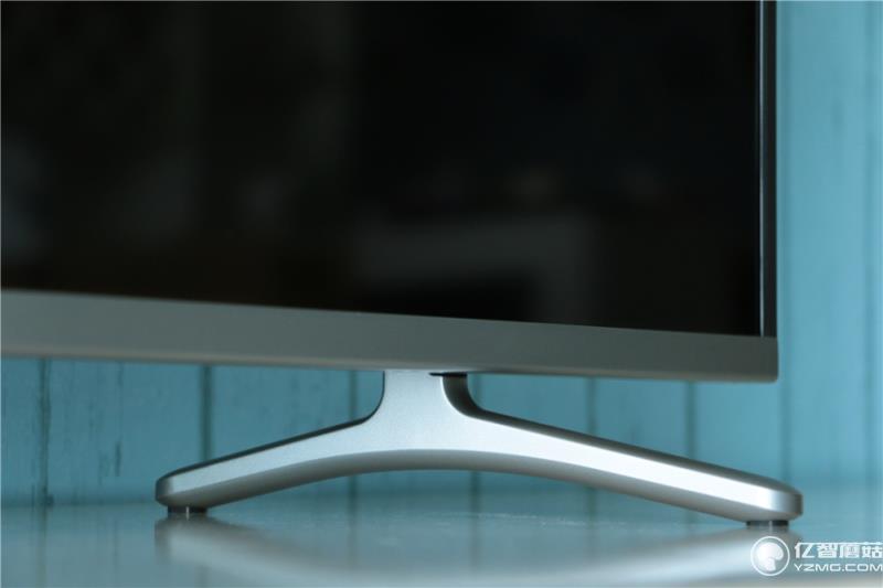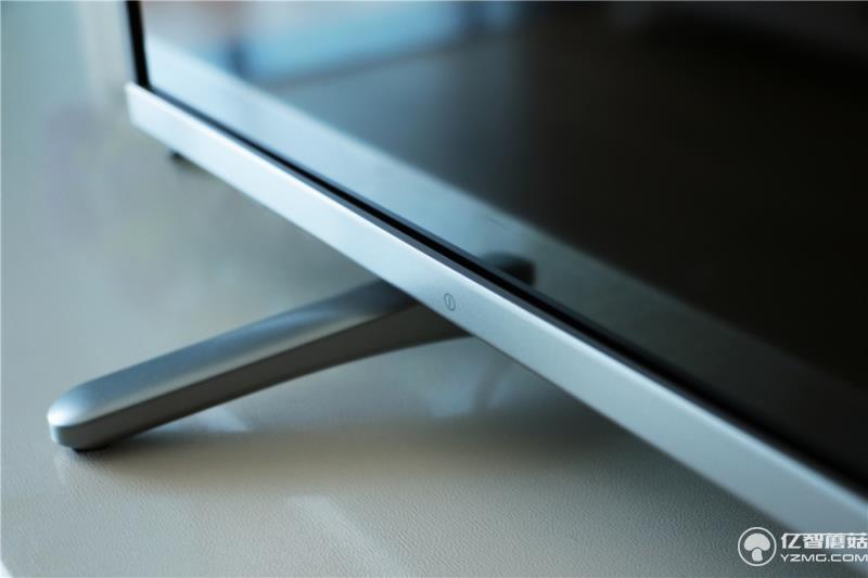 底部邊框包邊采用了腳架一樣的灰色金屬漆工藝,看起來(lái)比較有質(zhì)感,增添了幾分時(shí)尚氣息,腳架雖然為塑料材質(zhì),其拱形支撐結(jié)構(gòu)強(qiáng)度足夠高,兩腳底部設(shè)計(jì)了防滑腳墊,各部件之間的連接和縫隙處理也比較到位,可見微鯨這款電視雖然定價(jià)不高,但做工和細(xì)節(jié)處理上絲毫不含糊。