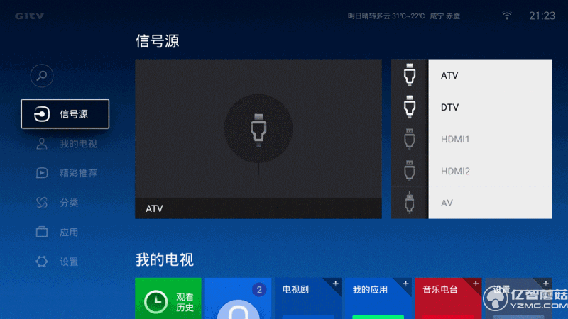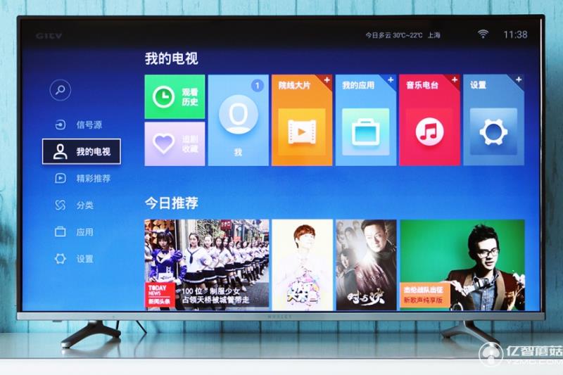 WUI界面采用瀑布流設(shè)計(jì),與很多普通的扁平化電視UI略有不同,其功能區(qū)塊分為信號(hào)源、我的電視、經(jīng)擦推薦、分類、應(yīng)用和設(shè)置6個(gè)大項(xiàng),操作效率更高,而豎向移動(dòng)的方式更符合大屏電視的操作習(xí)慣。