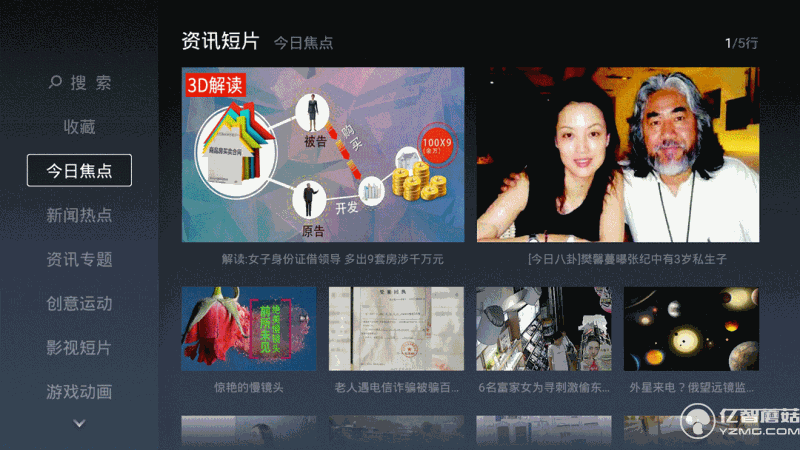 電視自帶的影視資源量非常大,通過(guò)系統(tǒng)自帶的推薦可以很方便找到最新的熱門影視,也可以通過(guò)明星搜索資源,或者進(jìn)入電影、電視劇、資訊、綜藝等對(duì)應(yīng)分類板塊查找,每一個(gè)板塊都內(nèi)置了多種細(xì)分類別,用戶能夠快速找到想看的資源。