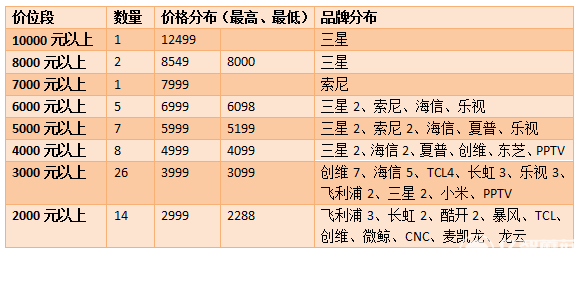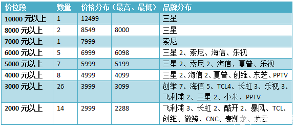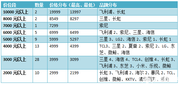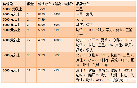 1、萬元以上價(jià)位曲高和寡,互聯(lián)網(wǎng)電視品牌企業(yè)沒有涉足的。