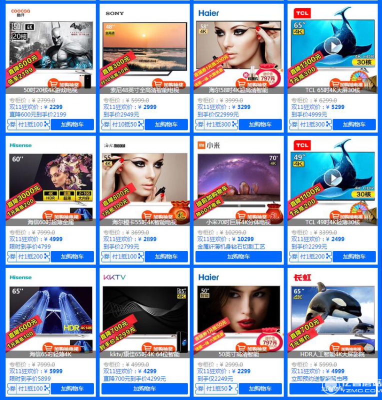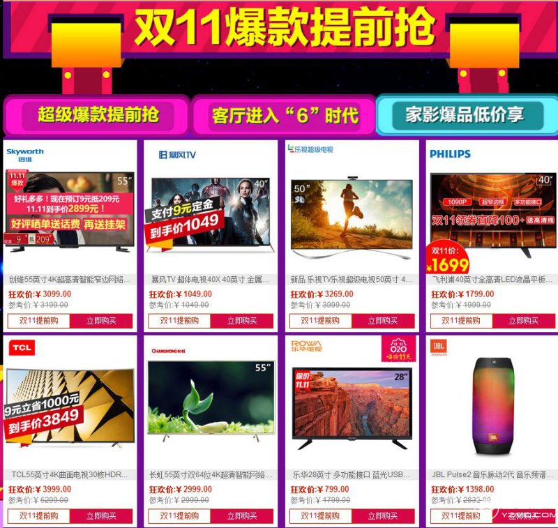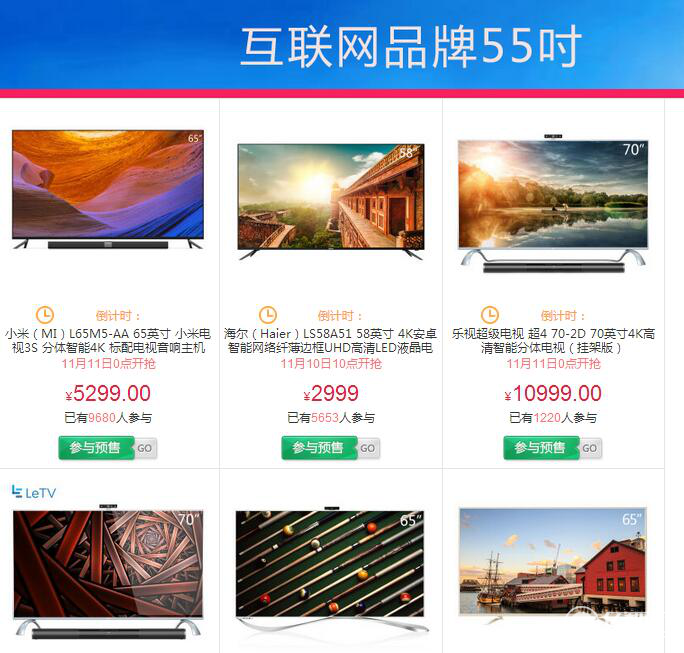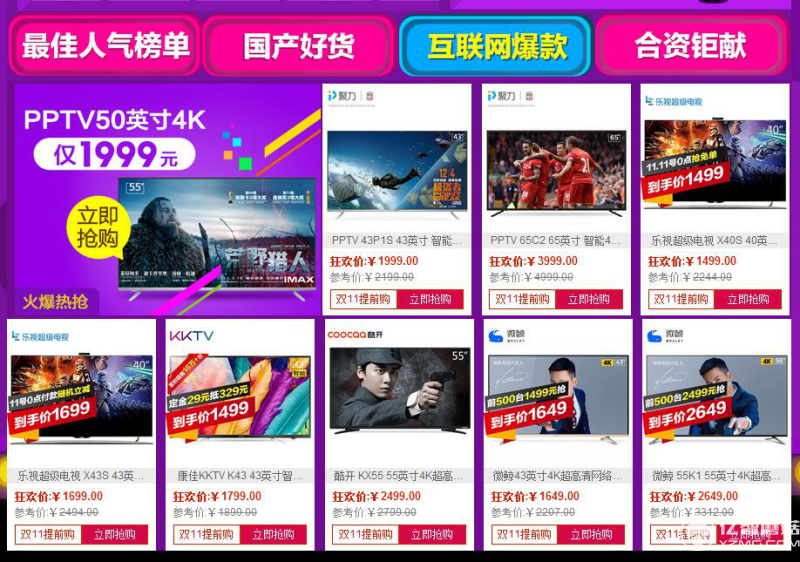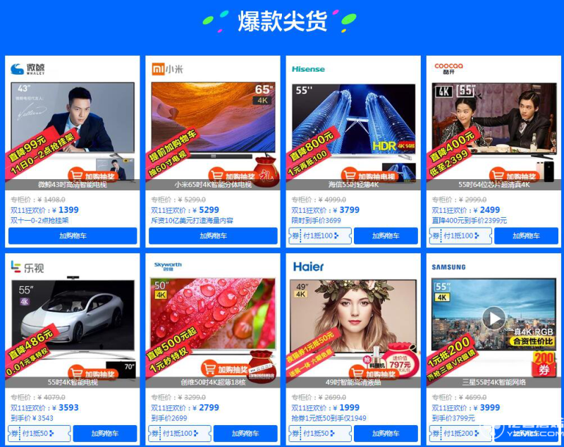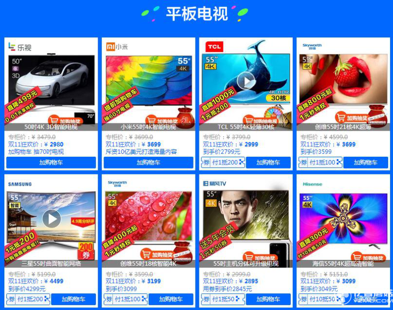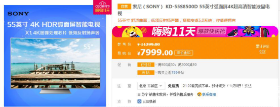 雙11京東蘇寧天貓55寸4K電視促銷大戰(zhàn)