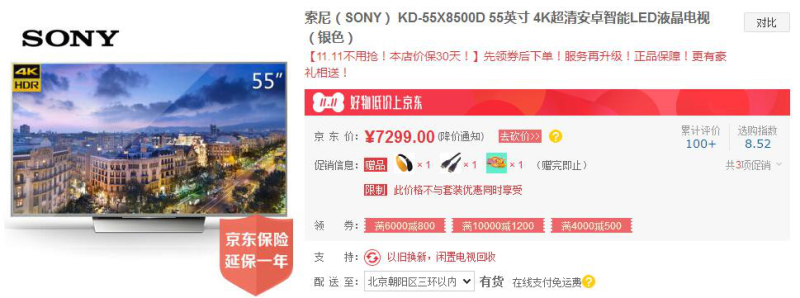 9、關(guān)于索尼的價(jià)格,蘇寧易購平臺的產(chǎn)品是高端版,京東、天貓的則為同一款,價(jià)格對比見如下截圖: