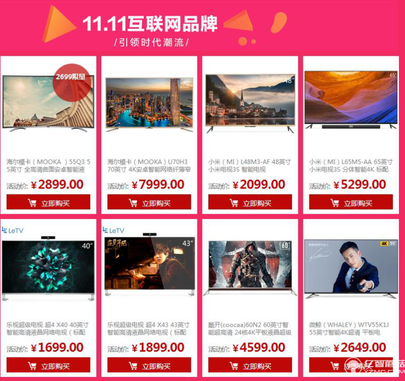在京東雙11活動主場的家電影音區(qū),很遺憾,主打的都是傳統(tǒng)家電品牌:康佳、飛利浦、TCL、長虹、海爾、創(chuàng)維、夏普。
