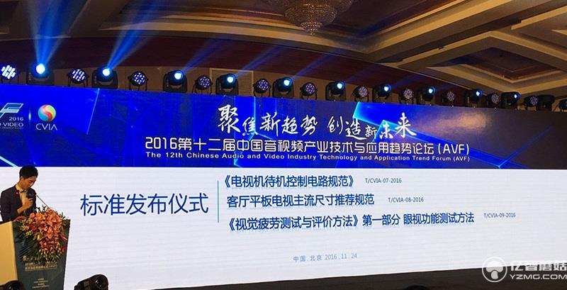 11月24日,由中國電子視像行業(yè)協(xié)會主辦“2016(第十二屆)中國音視頻產(chǎn)業(yè)技術(shù)與應(yīng)用趨勢論壇(AVF)”在北京召開,為了推動企業(yè)提升技術(shù)水平和效率,規(guī)范行業(yè)競爭、綠色節(jié)能減排,在本屆AVF論壇上,中國電子視像行業(yè)協(xié)會聯(lián)合TCL、創(chuàng)維、海信、海爾、康佳、長虹、京東方、樂金電子、三星、樂視、聚力、華星光電、熊貓、3M、奧維云網(wǎng)、中國標(biāo)準(zhǔn)化研究院、溫州醫(yī)科大學(xué)附屬眼視光醫(yī)院、中國科學(xué)院軟件所、顯示與視覺健康創(chuàng)新聯(lián)盟、北京理工大學(xué)、四川大學(xué)、東南大學(xué)、正星光電、華南師大、中彩聯(lián)、深圳市智能電視產(chǎn)業(yè)標(biāo)準(zhǔn)聯(lián)盟等企業(yè)和單位,共同制定并發(fā)布了《電視機待機控制電路規(guī)范》、《客廳平板電視主流尺寸推薦規(guī)范》、《顯示終端視覺疲勞測試與評價方法》第1部分 眼視功能測試方法。