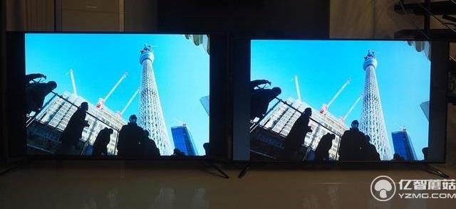畫面左側的是新款的微鯨55K2,右側則是一直在我家臥室里勤懇工作的55K1。兩臺電視機都正通過無線網絡訪問我家NAS上的照片庫,這是之前我去日本東京在“天空樹”電視塔下拍攝的一張晴天照片。請注意,兩臺電視都被我設置在“標準色彩”模式下,此時微鯨55K2的畫面亮度以及色彩飽和度明顯要比上代產品更高一些。